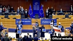 У Эўрапарлямэнце 16 сьнежня лідэрам беларускай апазыцыі ўручылі прэмію імя Андрэя Сахарава «За свабоду думкі» за 2020 год.