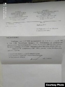 Падчас ператрусу забралі ня толькі тэлефоны і цьвёрды дыск, але і чэк з запраўкі ў Ваўкавыску на 30 літраў дызэльнага паліва за 20 верасьня. Чэк ляжаў у сьметніцы. У той дзень Галіна з дачкой Настасьсяй езьдзілі ў Камянецкі раён Берасьцейскай вобласьці па шчанюка каўкаскай аўчаркі, па дарозе назад заехалі заправіцца ў Ваўкавыску. Анастасія хадзіла плаціць за паліва, кажа, што чэк, як заўсёды, аддала маці. Падазрае, што тая нядаўна чысьціла гаманец і выкінула непатрэбныя паперы.