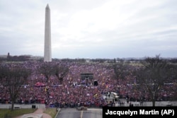 Крыху раней у Вашынгтоне прайшоў мітынг прыхільнікаў Трампа, на якім выступіў і сам дзейны прэзыдэнт.