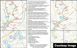 Часам апісаньне плянаў нагадваюць ваенныя мапы — як, напрыклад, гэтая мапа нядзельных маршаў для жыхароў менскага раёну Грушаўка.