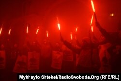 Грамадзкія актывісты выйшлі ў Кіеве на акцыю пратэсту да Офісу прэзыдэнта Ўкраіны пасьля таго, як суд у Адэсе прысудзіў двум вядомым актывістам пэрыяду Рэвалюцыі годнасьці, Сяргею Сьцярненку і Руслану Дземчуку, па 7 гадоў і тры месяцы пазбаўленьня волі ў справе аб выкраданьні і катаваньні чалавека.