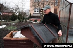 9. Пэнсіянэр займаецца таксама пчоламі. Як вызваліўся, зрабіў шэсьць новых вульлёў. Пасьля зімы падкормлівае пчол цукровым сыропам. Пчолы ўжо выляталі са сваіх домікаў у новым сэзоне.