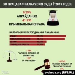 Напрыклад, за атрыманьне хабару ў 2019 годзе судзілі толькі 336 чалавек, а за пратэсты ад часу выбараў пад крыміналкай ужо 631 асоба — амаль удвая болей.