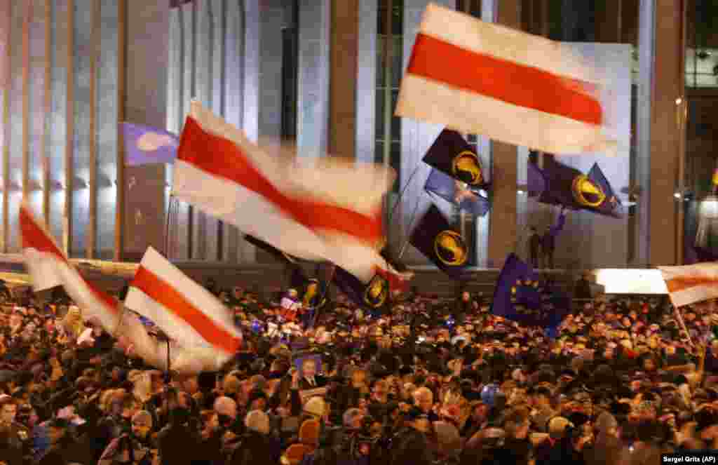 Дзясяткі тысяч чалавек на чале зь Мілінкевічам і Казуліным выйшлі на Кастрычнікую плошчу ў Менску ўвечары 19 сакавіка