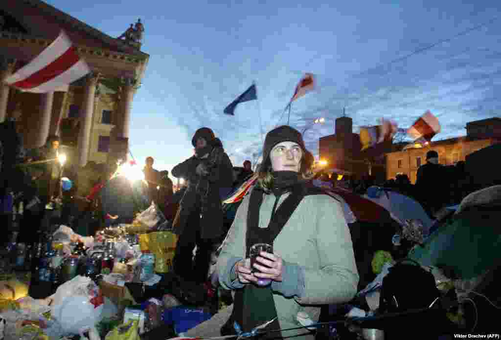 Прыхільніца Лукашэнка перад намётавым мястэчкам