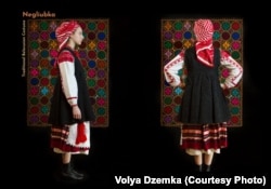 «У нас гэтыя строі ляжалі, і было шкада, што, акрамя нас, іх ніхто не можа пабачыць. Вельмі хацелася падзяліцца, і мы вырашылі, што трэба паспрабаваць выставіць калекцыю ў нашым сіэтлаўскім музэі. Ён вельмі сур’ёзны, і мы разумелі, што неабходная добрая прэзэнтацыя. Паколькі я магу ўсё здымаць, то пытаньняў больш не стаяла. Мадэляў магла папрасіць, зь якімі я працавала, якія „ходзяць“ у Мілане і Парыжы, але яны б проста ня ўлезьлі ў палову строяў, — сьмяецца Воля Дземка. — Так цудоўная Жэнечка аказалася залатой мадэльлю для нашага праекту. Тое, што я не магла зрабіць сама для каталёгу на сто адсоткаў, я прасіла зрабіць іншых».