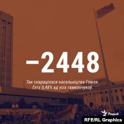 У Гомлі жыхароў стала меней на 2448 чалавек, гэта 0,48% ад усіх гамельчукоў. У Сяньне Віцебскай вобласьці жыхароў стала меней на 73 чалавекі, або на 0,98%. У Зэльве Горадзенскай вобласьці — менш на 84 чалавекі, або на 1,27%.