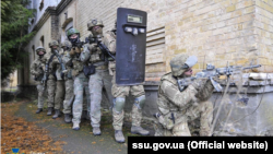 Тыднем раней на антытэрарыстычных вучэньнях у Ровенскай вобласьці спэцыяльныя падразьдзяленьні Службы бясьпекі і іншых праваахоўных органаў адпрацоўвалі затрыманьне «тэрарыстаў», якія захапілі будынак гаспадарчага суду.