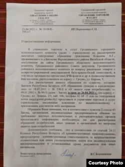 На гэты зварот адрэагавала Ўпраўленьне гандлю гарвыканкаму і прыслала ў краму свой запыт.