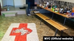 УУС Менскага аблвыканкаму суправадзіла інфармацыю фатаграфіяй застольля і бел-чырвона-белага сьцяга, раскладзенага на падлозе.