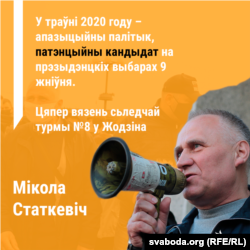 Неўзабаве пасьля пачатку кампаніі Сьвятланы Ціханоўскай Мікола Статкевіч далучыўся да яе, удзельнічаў у выбарчых пікетах. Быў затрыманы па дарозе на адзін зь іх 31 траўня 2020 году. Першы месяц Статкевіча трымалі пад вартай па адміністрацыйных артыкулах, у канцы чэрвеня яму прад’явілі абвінавачаньне ў арганізацыі дзеяньняў, якія груба парушаюць грамадзкі парадак.