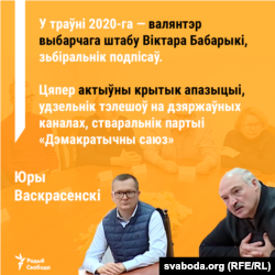 Роля Юрыя Васкрасенскага ў працы штабу Віктара Бабарыкі застаецца незразумелай. Па словах самога Васкрасенскага, ён уваходзіў у кіраўніцтва штабу, кіраваў зборам подпісаў па Першамайскім раёне Менску. Гэтую інфармацыю абвяргае сам Бабарыка. Верагодна, Васкрасенскі быў адным зь сяброў ініцыятыўнай групы, займаўся зборам подпісаў за вылучэньне Віктара Бабарыкі ва Ўруччы.