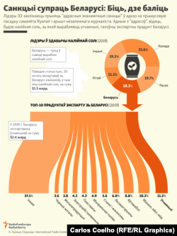 Эўразьвяз гаворыць пра калійную соль у кантэксьце магчымых адрасных эканамічных санкцыяў супраць рэжыму ў Беларусі. Паказваем месца калійнай солі ў беларускім экспарце.