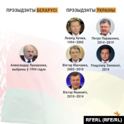 За час, калі Лукашэнка ачольвае Беларусь, ва Ўкраіне зьмянілася пяць прэзыдэнтаў — другога прэзыдэнта Ўкраіны Леаніда Кучму выбралі ва Ўкраіне ў той жа дзень, што і Лукашэнку ў Беларусі — 10 ліпеня 1994 году.