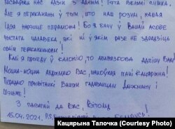 Ліст Вітольда Ашурка Кацярыне Талочцы, датаваны 15 красавіка 2021 году.