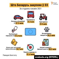 ЭЗ — буйны пастаўшчык вэтэрынарных вакцын, за студзень-люты гэтага тавару Беларусь набыла ў ЭЗ на 4,2 мільёна даляраў. У Расеі — удвая менш.