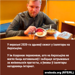 У верасьні 2020 году менавіта Рыгор Азаронак здымаў сюжэт у ізалятары на завулку Акрэсьціна. У ім разам з начальнікам ЦІП маёрам Яўгенам Шапецькам Азаронак-малодшы пераконвае, што на Акрэсьціна не магло быць катаваньняў і біцьця затрыманых за жнівеньскія пратэсты, а ўмовы ў ізалятары нагадваюць інтэрнат.