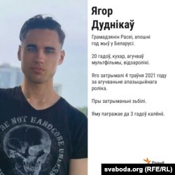 Ягор родам з Саратава. У Расеі вывучыўся на кухара. У Менску жыў каля году, прыехаў дзеля каханай дзяўчыны. Агучваў мультфільмы, анімэ, рэклямныя ролікі. Праваабарончы цэнтар «Вясна» паведамляе, што пры затрыманьні яго зьбілі і спачатку ўтрымлівалі ў СІЗА КДБ.