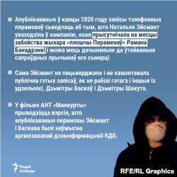 Аб тым, што Натальля Эйсмант уваходзіла ў кампанію, якая прысутнічала на месцы забойства жыхара «плошчы Пераменаў» Рамана Бандарэнкі і можа мець дачыненьне да ўтойваньня сапраўдных прычынаў яго сьмерці, сьведчаць апублікаваныя ў канцы 2020 году запісы тэлефонных перамоваў. Сама Эйсмант не пацьвярджала і не камэнтавала публічна гэтых запісаў, як не рабілі гэтага і іншыя іх удзельнікі, Дзьмітры Баскаў і Дзьмітры Шакута. У фільме АНТ «Манкурты» прыводзіцца вэрсія, што апублікаваныя перамовы Эйсмант і Баскава былі наўмысна арганізаванай дэзынфармацыяй КДБ.