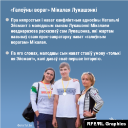 Пра няпростыя і нават канфліктныя адносіны Натальлі Эйсмант з малодшым сынам Лукашэнкі Мікалаем неаднаразова расказваў сам Лукашэнка, які жартам называў сваю прэс-сакратарку нават «галоўным ворагам» Мікалая. Па яго словах, малодшы сын нават ставіў умову «толькі ня Эйсмант», калі даваў сваё першае інтэрвію.