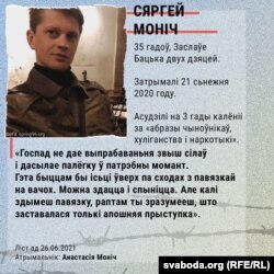 - Затрымалі 16 кастрычніка 2020 году. Асудзілі на 2 гады калёніі за «пратэсты» і «гвалт над міліцыяй».