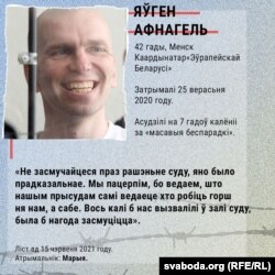 - Затрымалі 25 верасьня 2020 году. Асудзілі на 7 гадоў калёніі за «масавыя беспарадкі».