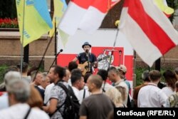 «Сёньня беларусы маюць магчымасьць адзначыць ва ўкраінскай сталіцы, на сымбалічным месцы, сваё сьвята, якое Лукашэнка незаконна скасаваў, але беларуская апазыцыя адзначала яго, нягледзячы на рэпрэсіі», — сказала сустаршыня Руху салідарнасьці «Разам» Алена Талстая.