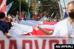 Сёлета, апроч беларускіх добраахвотнікаў, да маршу далучыліся і беларусы, якія вымушаныя былі ўцякаць ва Ўкраіну ад крымінальнага перасьледу за ўдзел у акцыях пратэсту пасьля прэзыдэнцкіх выбараў у жніўні 2020 году.