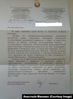 «Былі хлопцы і дзяўчаты, якім сама адміністрацыя ставіла „нп“ [пропускі заняткаў. — РС] па нейкіх прадметах, а потым давала за гэта вымову, каб іх адлічыць. Там што ні гісторыя — сапраўдны кашмар. І добра, што большую частку студэнтаў аднавілі потым. Першапачаткова іх было каля 20 чалавек, адлічылі 6, а 3 прынцыпова не хацелі аднаўляцца пасьля ўсяго. У кастрычніку ў нас зьмянілі маральна-этычны кодэкс, а сказалі, што гэта было ў жніўні», — кажа выпускніца Анастасія Махамет.