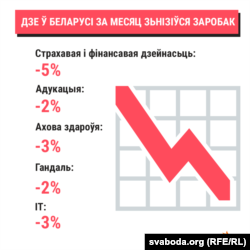 Глядзім, у якіх сфэрах заробак зьнізіўся найбольш.