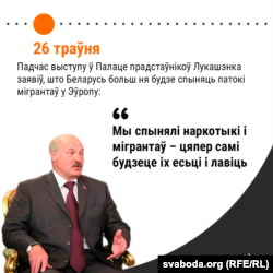 - Урады Літвы, а затым Латвіі і Польшчы, улетку 2021-га зрабілі істотна больш строгім заканадаўства аб нелегальным перасячэньні дзяржаўнай мяжы, а таксама выслалі ў памежныя зь Беларусьсю раёны падмацаваньне з вайсковых злучэньняў. Лукашэнку абвінавацілі ў спрыяньні нелегальнай міграцыі ў краіны Эўразьвязу.