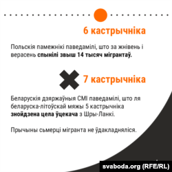 Беларускія дзяржаўныя СМІ паведамілі, што ля беларуска-літоўскай мяжы 5 кастрычніка знойдзена цела ўцекача з Шры-Ланкі. Побач з загінулым знаходзіліся ягоныя дакумэнты, плястыкавыя карткі і мабільны тэлефон. Прычыны сьмерці мігранта не ўдакладняліся.