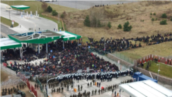 Перад самым памежным пунктам пропуску мігранты пачалі ставіць намёты. Тэмпэратура паветра ў памежным раёне 2-3 градусы вышэй за нуль.