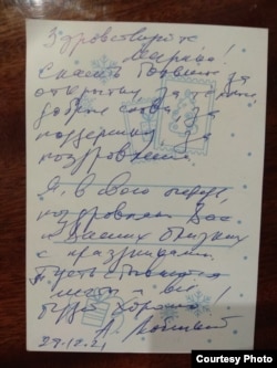 Марына напісала некалькі лістоў за краты, толькі на адзін зь іх прыйшоў адказ — паштоўка, у якой Андрэй віншуе яе з Новым годам: