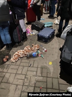 Сям’я даехала да памежнага пераходу «Шэгені», але ён быў закрыты, бо перапоўнены: чаргі чакалі больш за 3000 чалавек. Яўгенію з Сашай падвезьлі на чыгуначны вакзал у Львове — там мелі быць цягнікі на Польшчу.