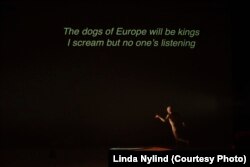 «Даўно адкладаная эпічная п’еса Беларускага свабоднага тэатру „Сабакі Эўропы“ — амаль неапісальна велізарная, гэта бязьмежнае пранізьлівае вар’яцтва, якое працягваецца звыш абвешчаных трох гадзінаў і стварае ўражаньне, што ты сам яго перажываеш.