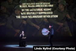 «Эпічны раман Альгерда Бахарэвіча, які ляжыць у аснове ашаламляльна магутнай новай п’есы Беларускага свабоднага тэатру, быў апублікаваны ў 2017 годзе, але ў сьвятле бягучых сусьветных падзеяў уражвае жахлівай празорлівасьцю. Сярэдзіна ХХІ стагодзьдзя, і Расея акупавала суседнія краіны, выкараняючы жыцьцё, абрынаючы цывілізацыю ў хаос.