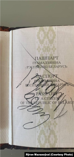 «У чарзе мы стаялі недзе суткі. Калі пад’ехалі на пункт пропуску, украінкам на месцы паставілі штампы, а мой пашпарт забралі. Чакаў недзе 20 хвілін. Я паглядзеў пашпарт толькі ўжо на польскай мяжы і пабачыў гэты надпіс. Польская памежніца паглядзела і пачала задаваць шмат пытаньняў, сказала ісьці за ёй у вялікі будынак, і там мяне ўжо запыталі — навошта, дзе і чаму паставілі, і папярэдзілі, што могуць быць праблемы, бо гэта лічыцца псаваньнем пашпарта. Але потым сказалі — ладна, едзьце».