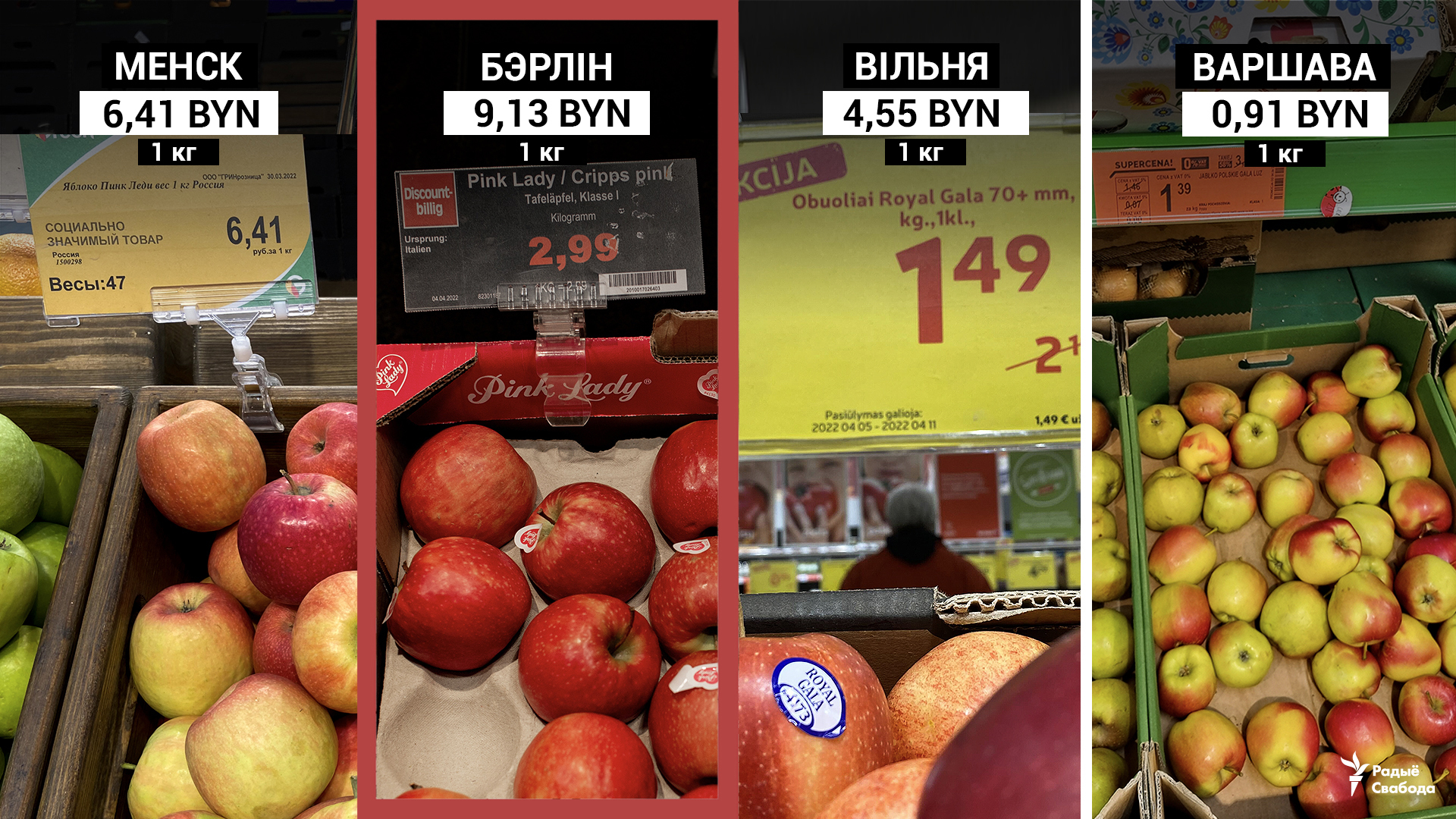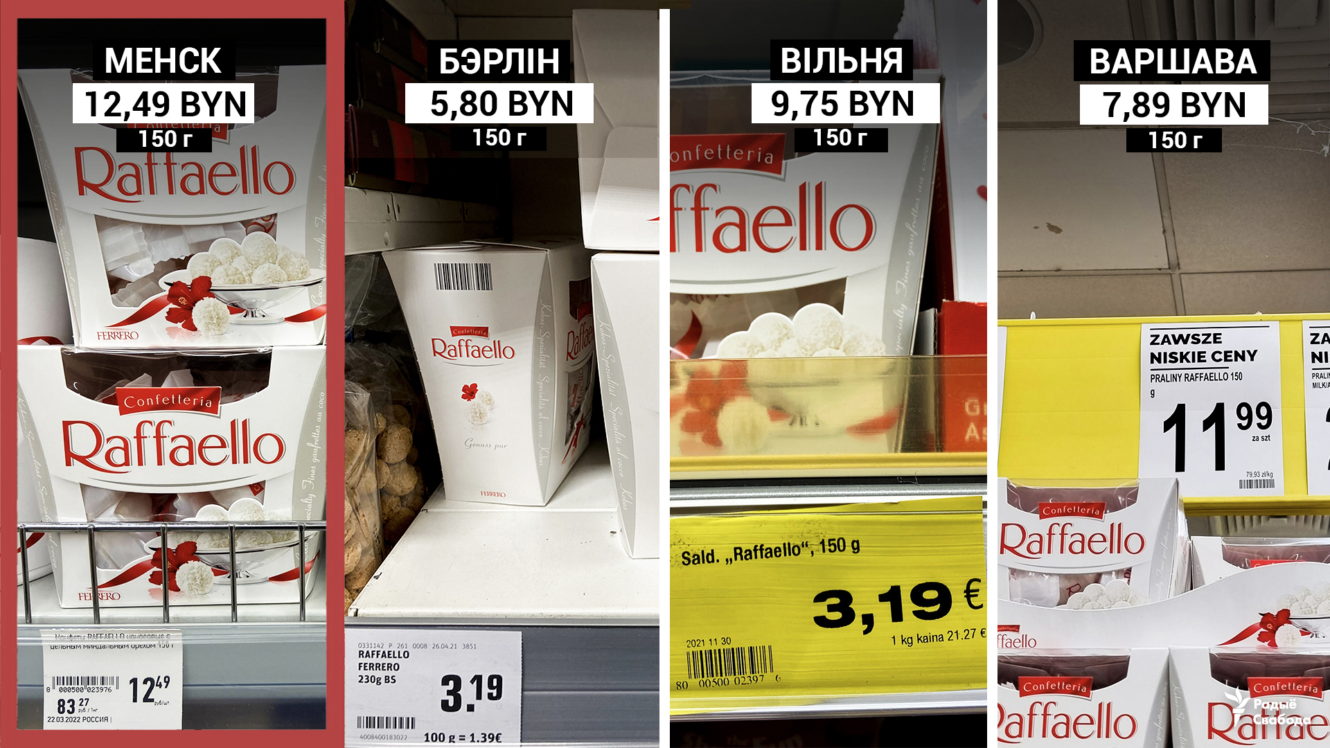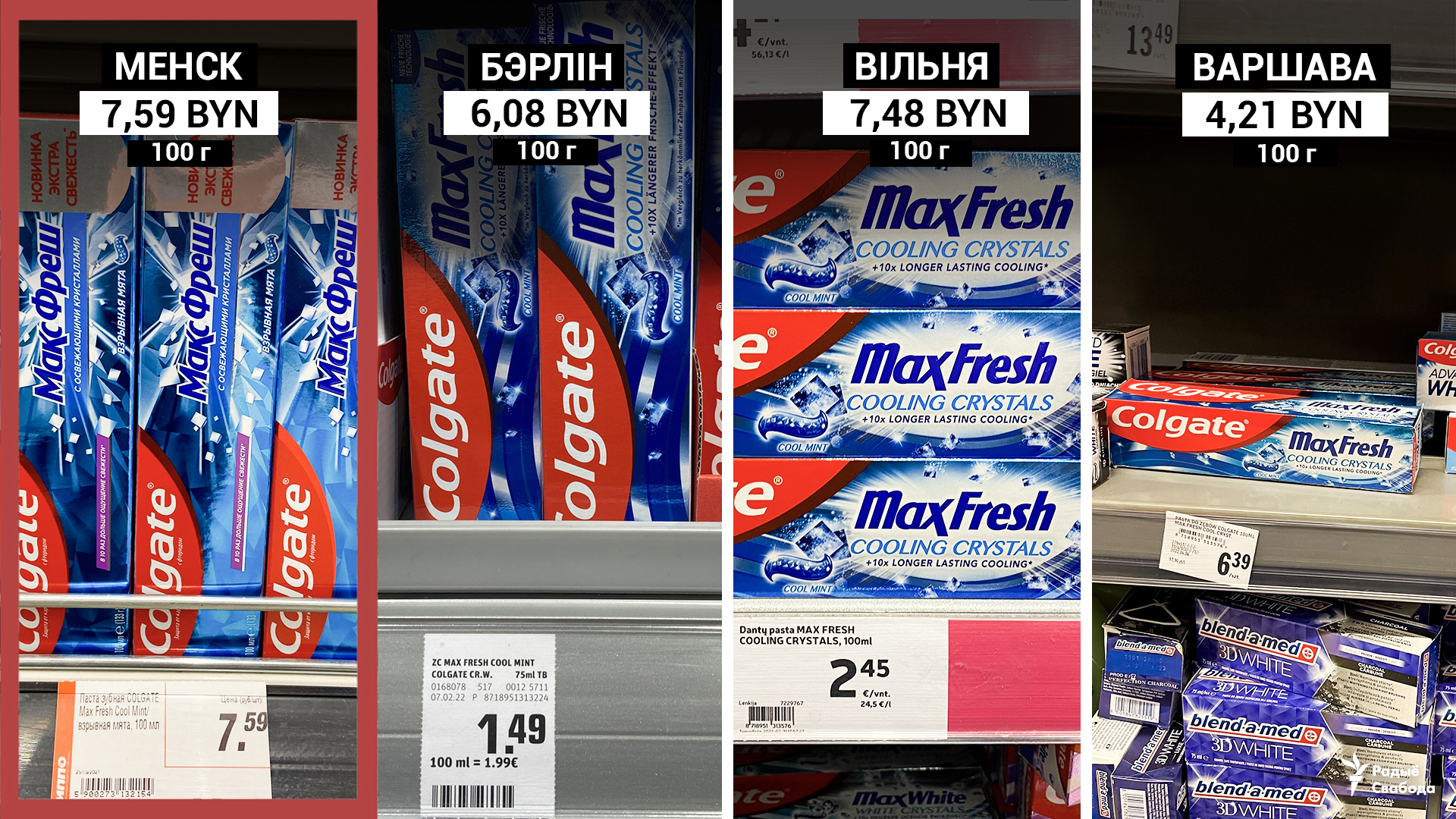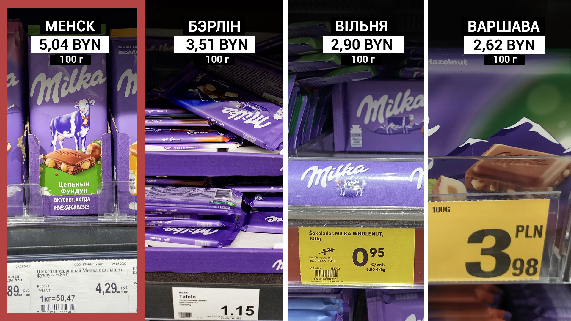 Аказалася, што, амаль усе абраныя тавары даражэйшыя ў Беларусі. Сярод такіх — дзіцячыя падгузьнікі, шакаляд, кава молатая, аліўкавы алей, памідоры, авакада, перац салодкі, капсулы для пральнай машыны, какосавыя цукеркі. Прычым некаторыя пазыцыі ў Беларусі даражэйшыя ў разы: так, паўкіляграмовы пачак кавы ў менскім гіпэрмаркеце каштуе 38 рублёў, у Вільні — 21, а ў Варшаве і Бэрліне — менш за 15. Авакада ў Менску каштуе амаль 36 рублёў, у Варшаве і Бэрліне — удвая менш, каля 18 рублёў, а ў Вільні на зьніжцы ўвогуле каля 11 з паловай рублёў.