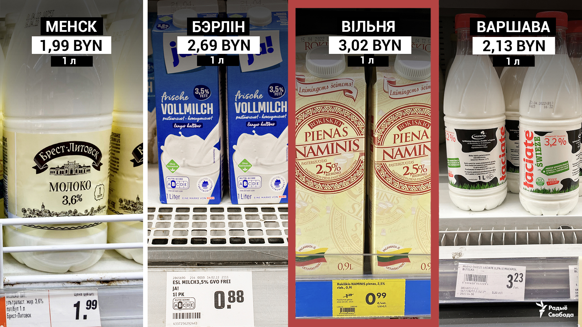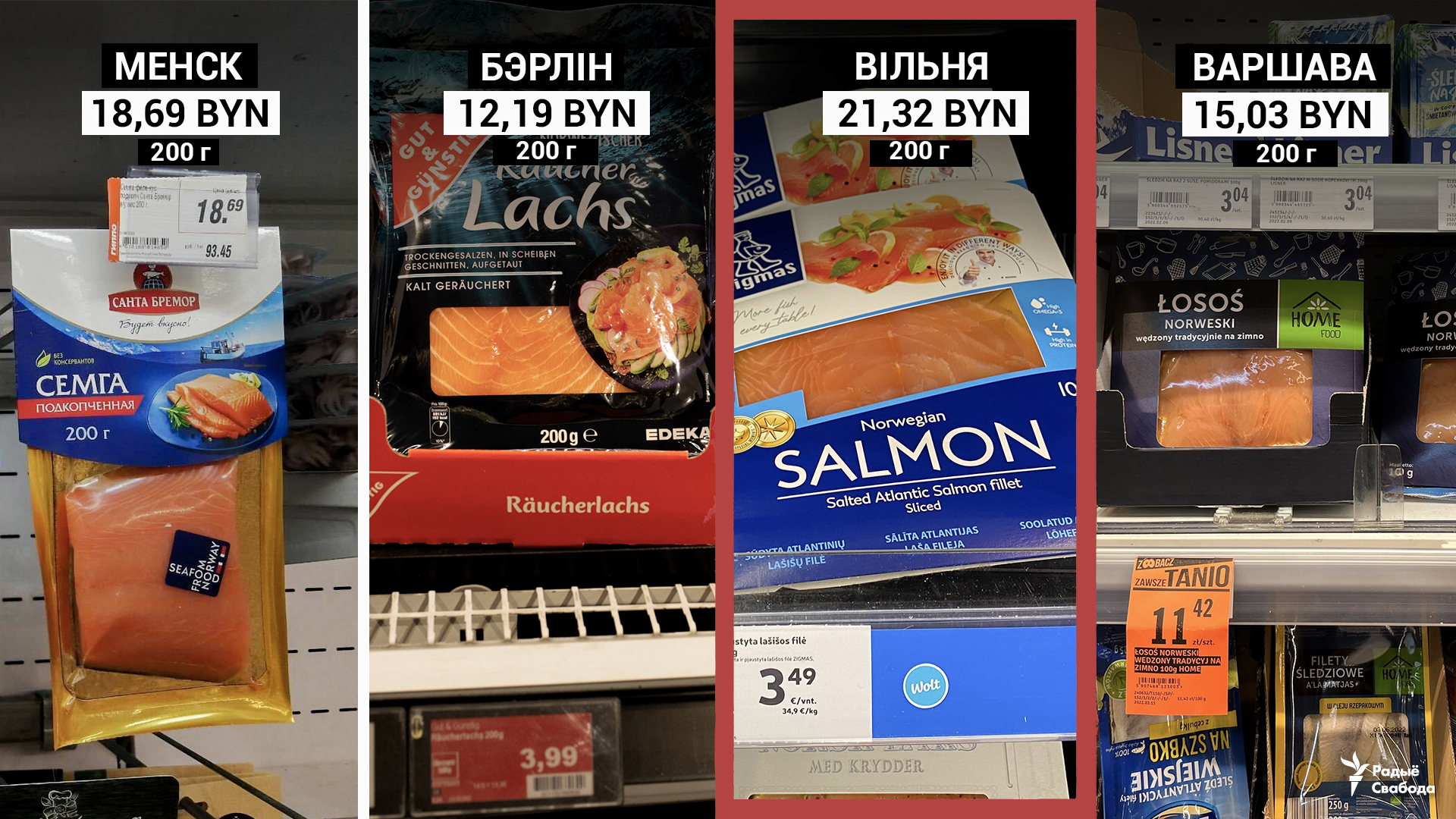 З таго, што таньней у Менску і што трапіла ў наш сьпіс, — малако (у Менску самае таннае), чырвоная рыба (у Менску яна таньнейшая, чым у Вільні, але даражэйшая, чым у Варшаве і Бэрліне) і шампунь (у Менску даражэйшы, чым у Варшаве, але таньнейшы, чым у Нямеччыне і Літве),