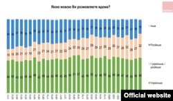 Адказы на пытаньне аб мове хатняга ўжытку на вялікім часавым інтэрвале дэманструюць тэндэнцыю зьмяншэньня долі расейскамоўных і павелічэньня долі тых, хто ў хатнім побыце ўжывае ўкраінскую і расейскую адначасова. Пры гэтым доля ўкраінамоўных у побыце заставалася стабільнай на працягу 11 гадоў.