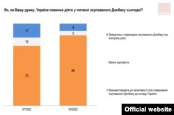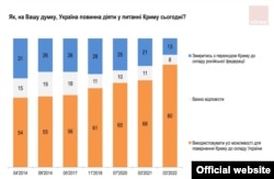 Аднак пры гэтым межы кампрамісу, які дапускае грамадзкая думка, досыць вузкія. Гатоўнасьць да саступкі Крыму і тэрыторыі самаабвешчаных рэспублік «ЛДНР» за час вайны не павялічылася, а зьменшылася.