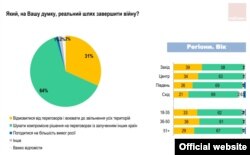 Нягледзячы на тое, што пераважная большасьць украінцаў лічыць, што іхная краіна адабʼе напад Расеі, амаль дзьве траціны лічаць, што гэта адбудзецца ў спалучэньні ваенных і дыпляматычных мэтадаў, а ня толькі ваенных (апошняе лічыць рэальным толькі 31% апытаных).
