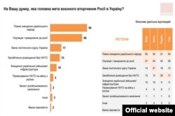 Расейская ўлада афіцыйна заяўляе, што мэта нападу на Ўкраіну, які там называюць «спэцыяльнай ваеннай апэрацыяй», — гарантаваньне бясьпекі «ЛДНР», перадухіленьне ўступленьня Ўкраіны ў NATO, а таксама незразумелыя «дэмілітарызацыя» і «дэнацыфікацыя». Праўда, час ад часу расейскія публіцысты і палітыкі расшыфроўваюць сэнс гэтых мэтаў. Аўтар праграмнага артыкула на сайце РИА Новости Цімафей Сяргейцаў і намесьнік дзяржсакратара Савету бясьпекі РФ Дзьмітрый Мядзьведзеў у сваім тэлеграм-канале патлумачылі, што «дэнацыфікацыя» азначае фактычна дэўкраінізацыю, зьнішчэньне ўкраінскай дзяржаўнасьці і нацыянальнай ідэнтычнасьці. Менавіта гэтак пераважная частка ўкраінцаў і разумее расейскія мэты вайны.