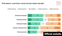 Больш за 50% апытаных лічаць недастатковымі заходнія санкцыі і заходнюю вайсковую дапамогу.
