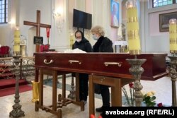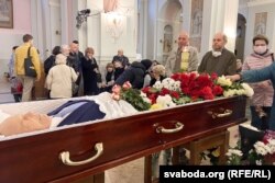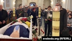 Разьвітаньне будзе працягвацца ўсю ноч і скончыцца імшой 7 траўня. У першы дзень разьвітаньня прысутнічаюць чальцы сям’і спачылага, сябры. У залі цяпер каля 200 чалавек, людзі падыходзяць. Сярод прысутных былі заўважаныя былыя дэпутаты Вярхоўнага Савету Лявон Баршчэўскі і Алег Трусаў. Ні афіцыйных прадстаўнікоў, ні вянкоў ад іх у першы дзень разьвітаньня пакуль не было.