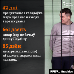 Праз адмову ад ежы Ігара перавялі ў камэру з цэладзённым відэаназіраньнем. Празь нейкі час у палітвязьня пачаліся праблемы са здароўем. Ежу Ігар пачаў прымаць толькі на 42-і дзень. Гэта адна з самы працяглых галадовак пратэсту ў гісторыі Беларусі.