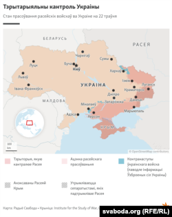 Вашынгтонскі Інстытут вывучэньня вайны (ISW) апублікаваў штодзённы аналіз узброенага канфлікту ва Украіне. Галоўнае на 100-ы дзень вайны: