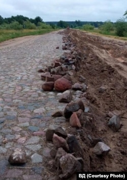Начальнік ДРБУ-135 Вадзім Савіцкі, якога цытуе афіцыйная газэта Менскага аблвыканкама, пацьвярджае, што кавалак брукаванкі на згаданай дарозе быў зьнішчаны. Але, паводле яго, гаворка ідзе не пра канкрэтна той адрэзак, які мае статус гісторыка-культурнай каштоўнасьці.