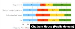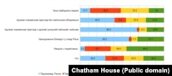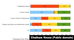 Адказы на пытаньне пра выбар для Беларусі падчас вайны прадстаўленыя на графіку са справаздачы Chatham House.